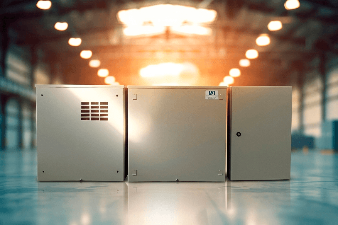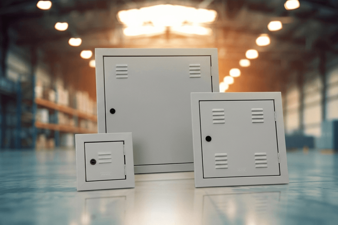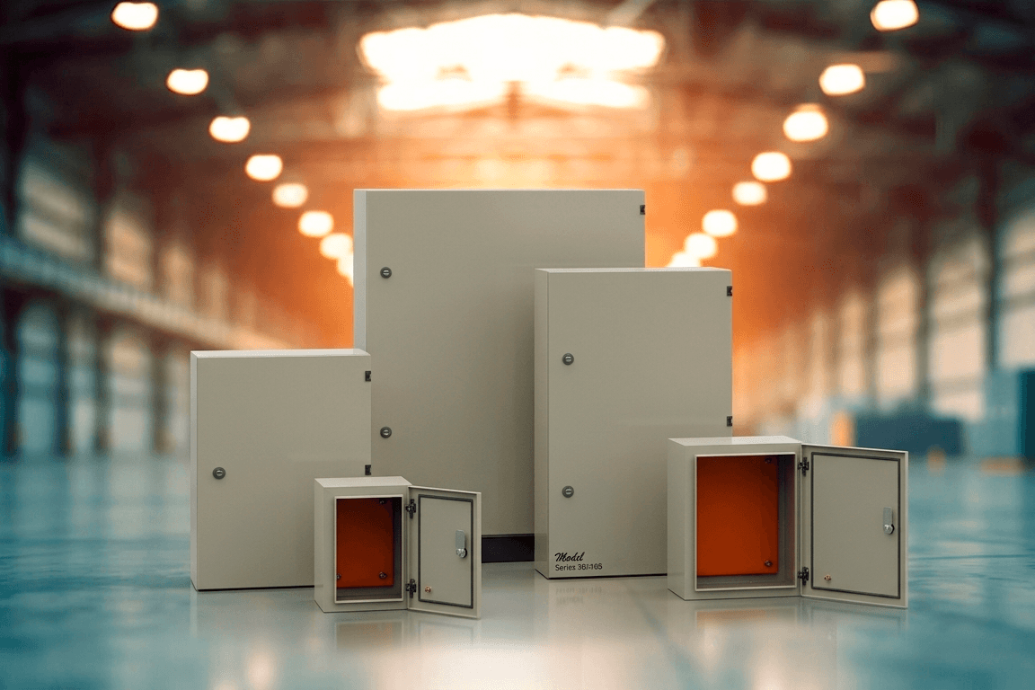 • As caixas e portas são produzidas em chapa galvanizada, dobradas e soldadas, dependendo do seu tamanho e formato.