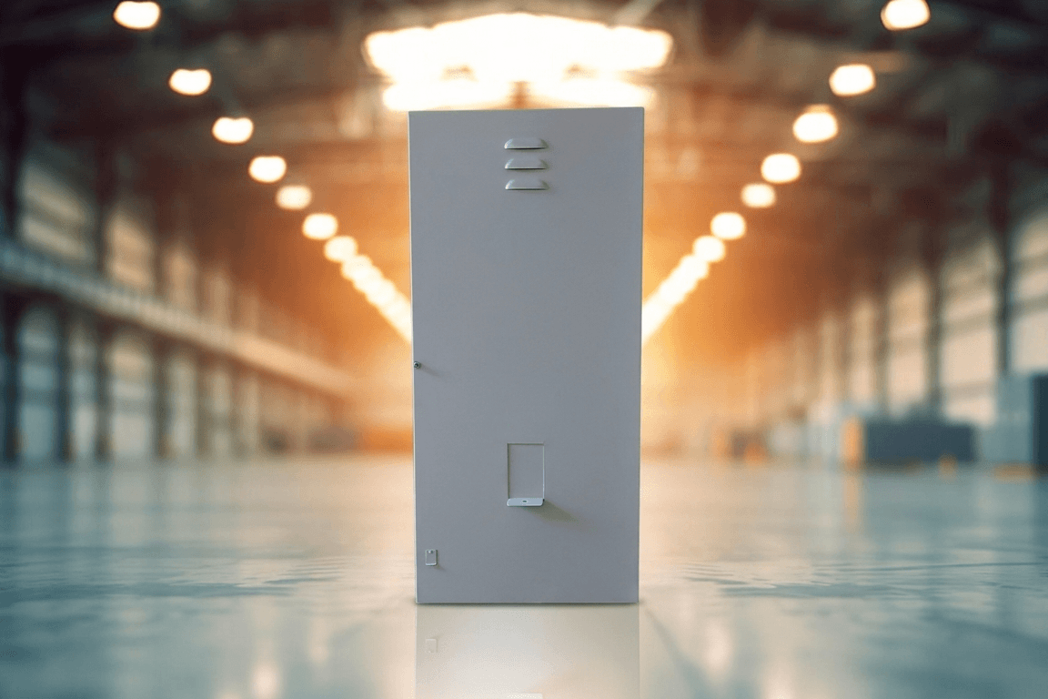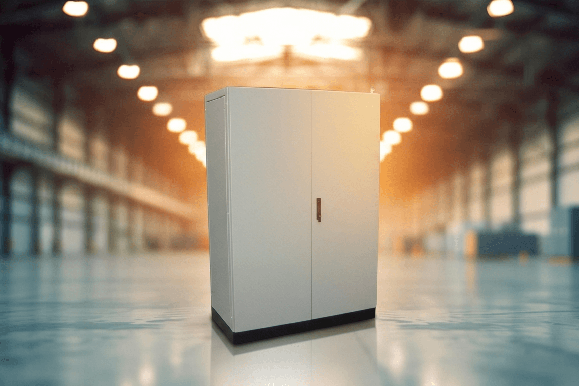 - As caixas e portas são produzidas em chapa galvanizada, dobradas e soldadas, dependendo do seu tamanho e formato. Fecho Fenda. Pintura eletrostática Bege